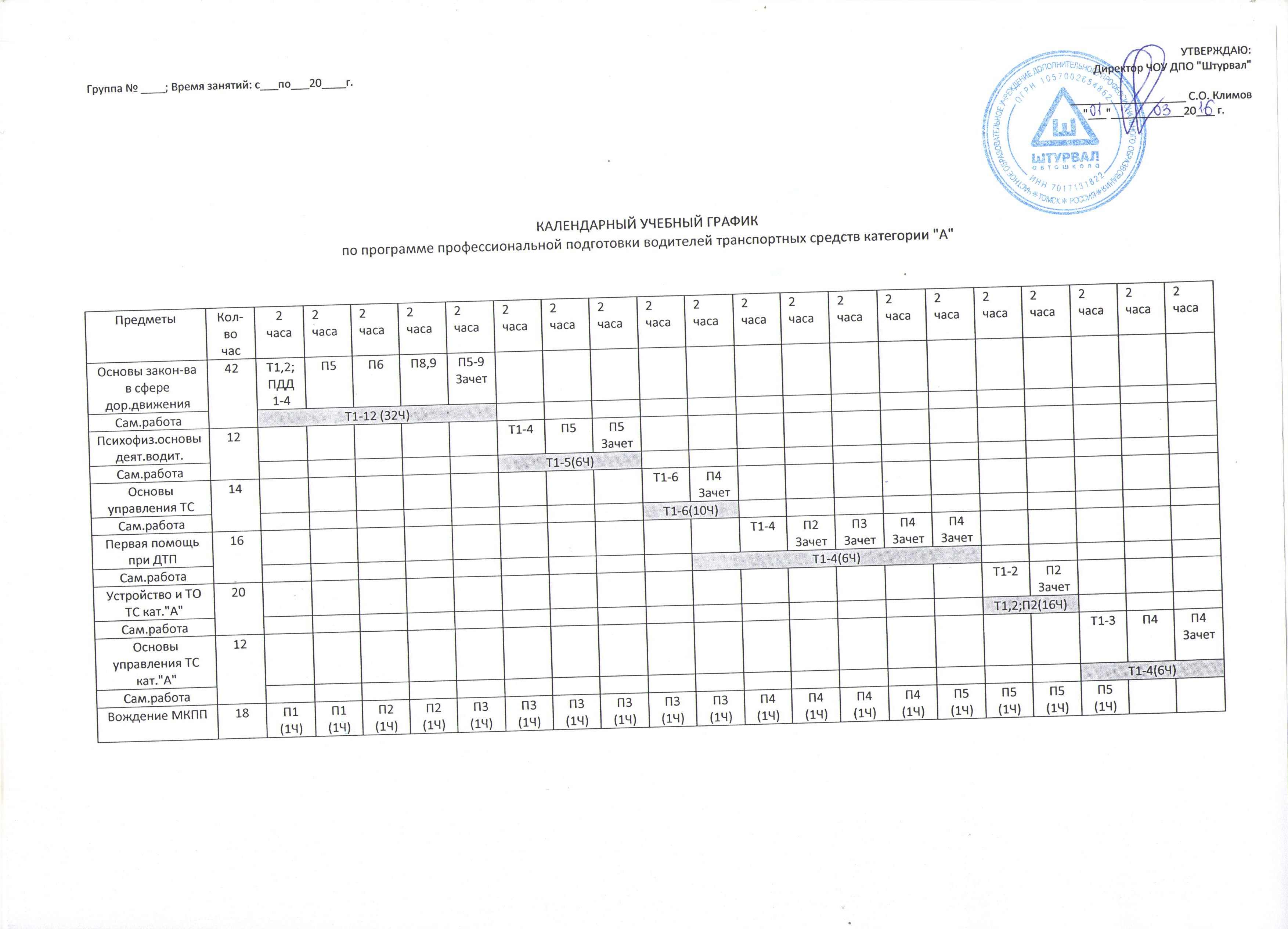 - Календарный учебный график прохождения программ профессиональной подготовки водителей транспортных средств категории “В”