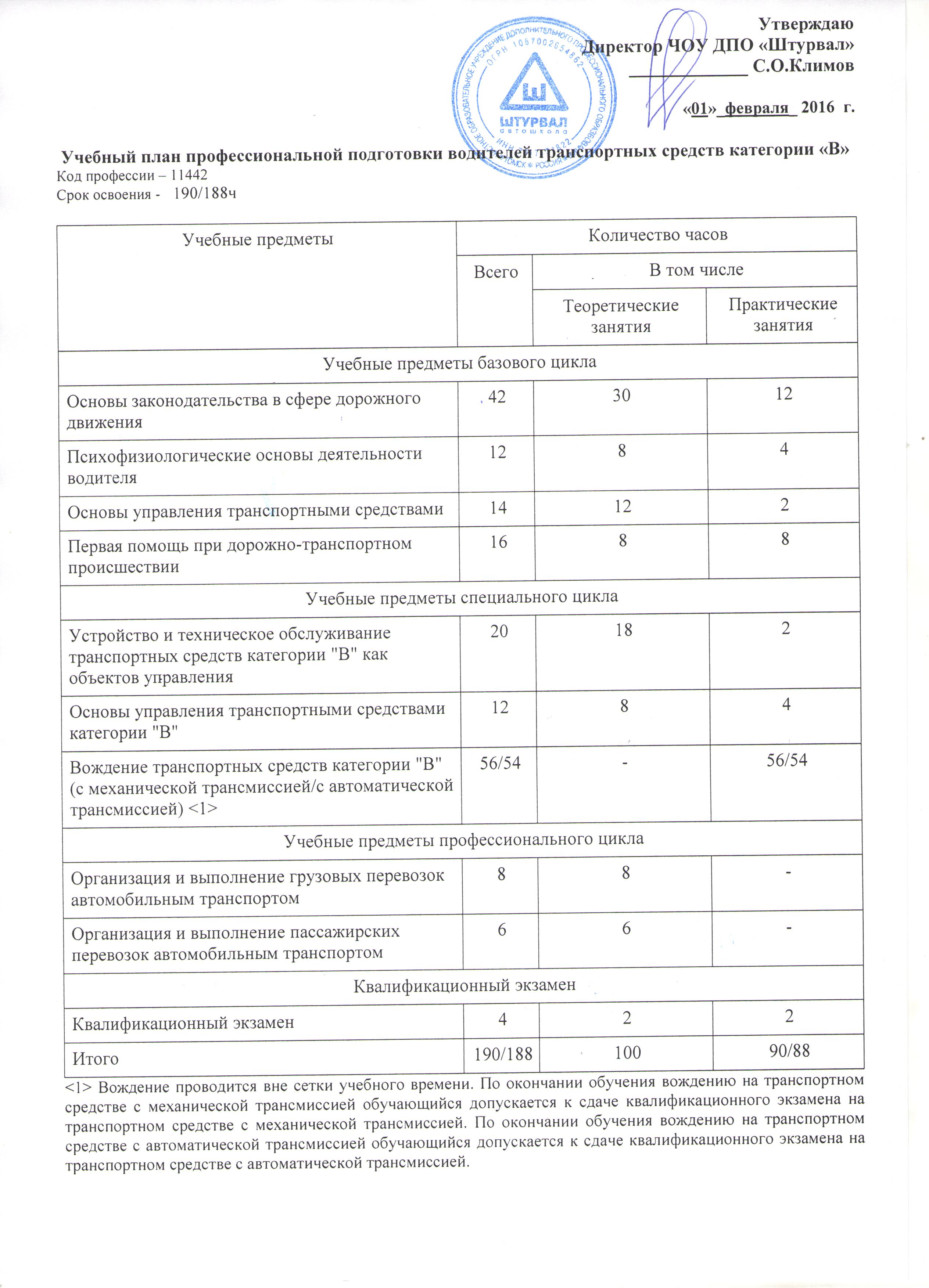 - Рабочая программа профессиональной подготовки водителей транспортных средств категории “В”
